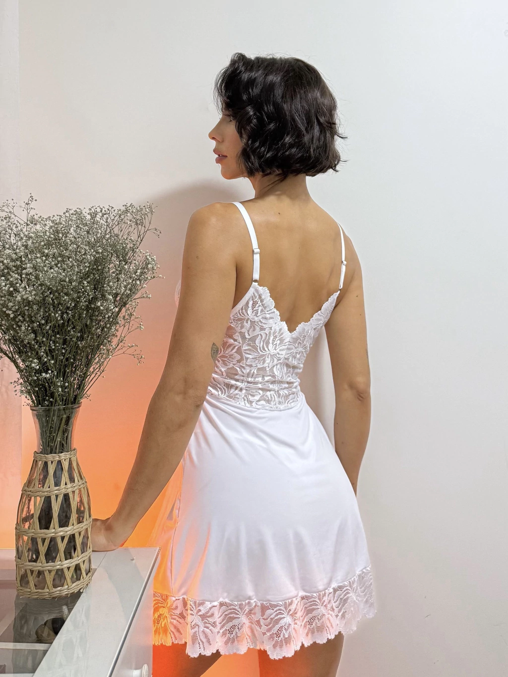 Camisola Raquel branca com Detalhes em Renda – Elegância, Conforto e Toque de Sensualidade