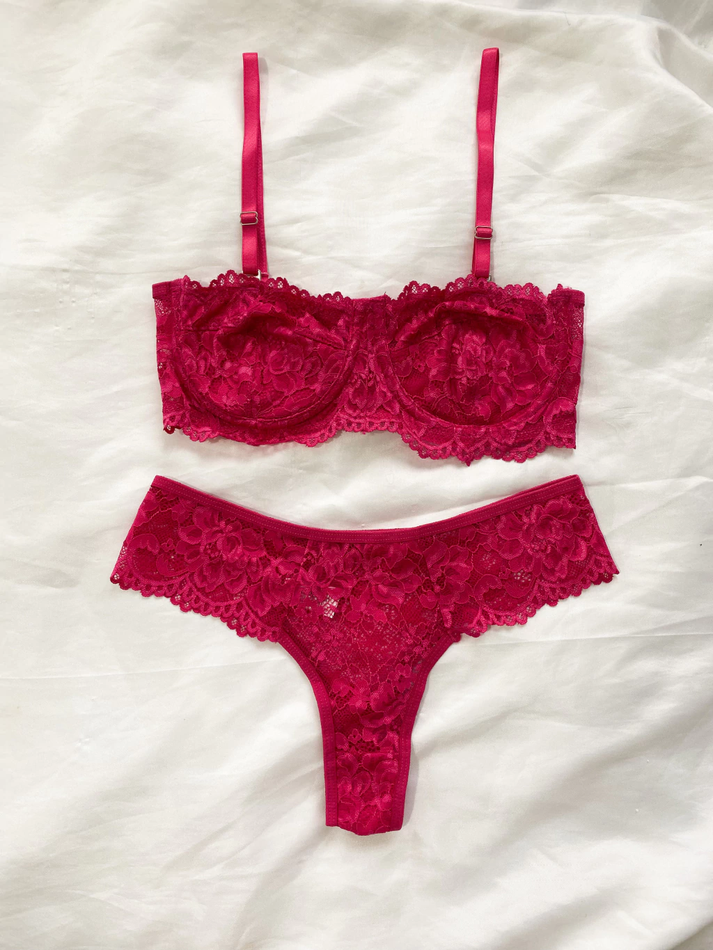 Delicadeza e sensualidade definem este elegante conjunto de lingerie, todo em renda detalhada para um visual sofisticado e irresistível. O forro em algodão garante conforto e respirabilidade, proporcionando um toque macio à pele. O sutiã conta com alças removíveis, oferecendo versatilidade para diferentes estilos e ocasiões. Ideal para quem busca charme e elegância sem abrir mão do conforto.